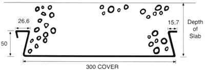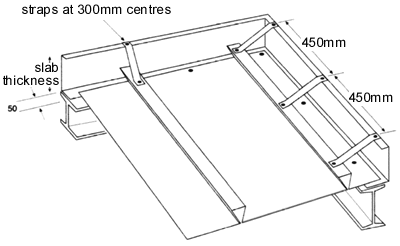 (typically on top of shear studs). This gives a fire rating of 90 minutes for a slab of