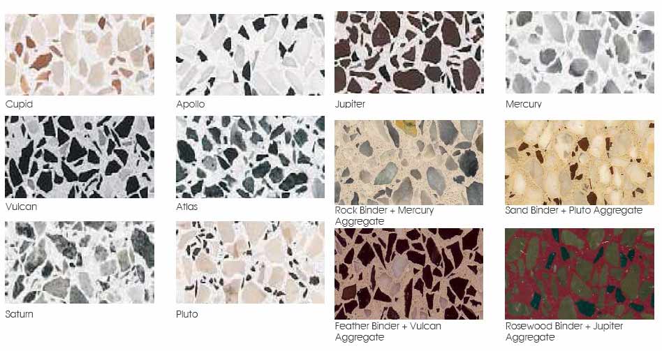 Examples of resin matrix colours used in conjunction with Classic Aggregate blends