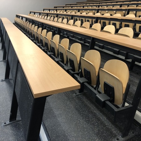 Laminated Beech seats and writing surfaces, for maximum seating in the Educational environment. Available with various writing surface finishes and black of grey frames.