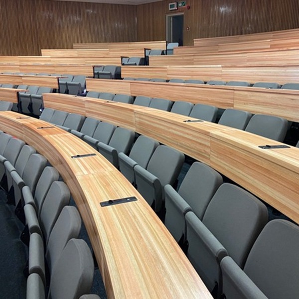 Solid Saligna Educational bench seating systems. Extremely robust, whilst aesthetically pleasing.