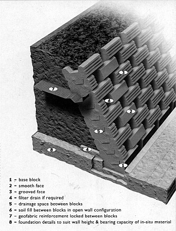 Enviro-Wall, a versatile reversible block allowing a variety of visual effects. It can be used with gaps for vegetation growth or as a solid engineering structure. Enviro-Wall is a cost-effective and simple retaining wall system. Suitable for high and low walls, river bank protection and countless other commercial, industrial and domestic situations.. |