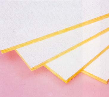 non-combustible glass fibres and binders which are lightweight and resilient. A decorative vinyl facing